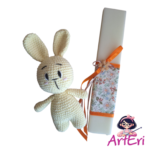 Χειροποίητη λαμπάδα με πλεκτό κουνελάκι ροζ (25cm)